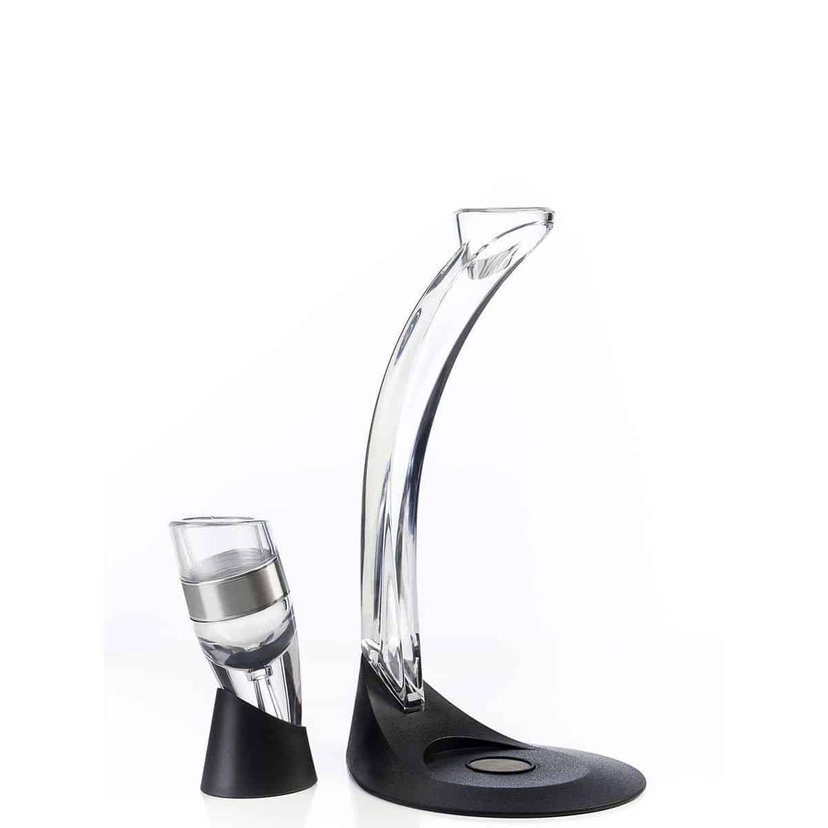 Airea el vino en cuestión de segundos para mejorar el sabor y olor y ahora el tiempo decantando el vino.