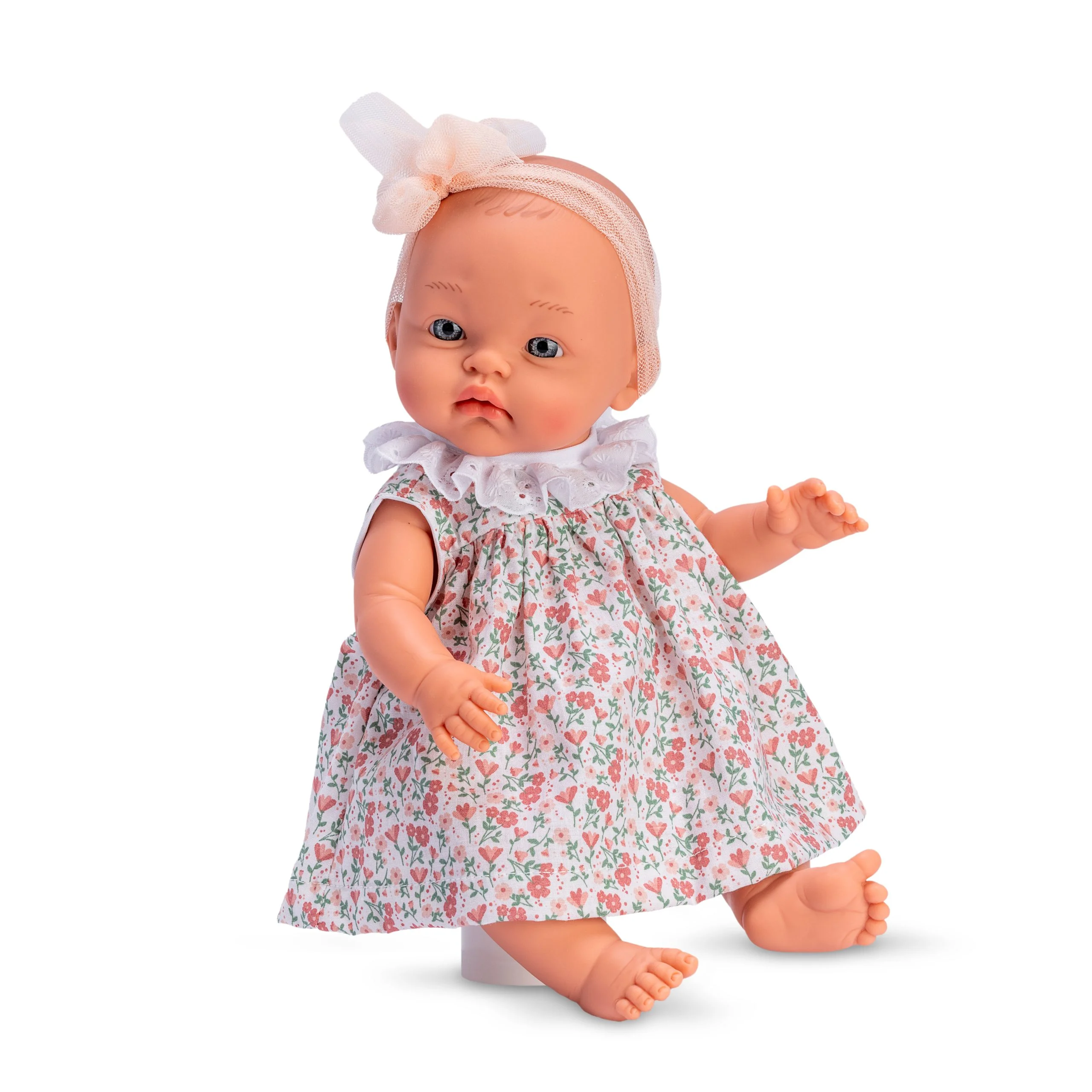 Alex tiene ojos claros que le dan una expresión vivaz y una cabeza pelona (sin pelo), lo que lo hace ideal para juegos que involucren el agua, como bañarlo. Su diseño robusto y fácil de limpiar asegura que sea duradero y fácil de mantener.