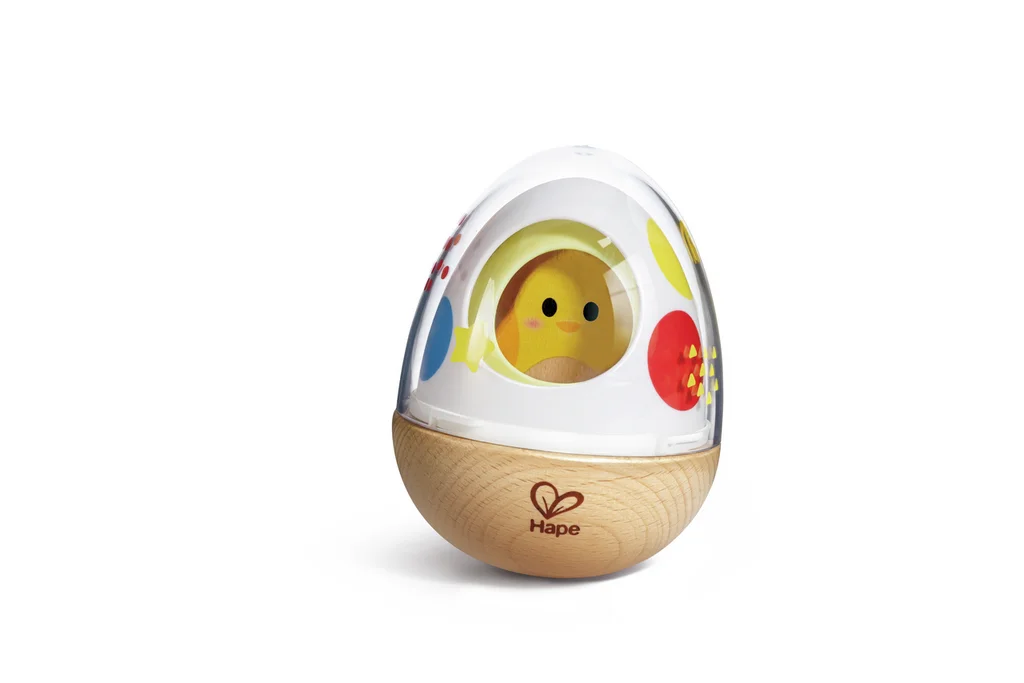 DIVERSIÓN 2 EN 1: las mentes curiosas se verán atraídas por este tambaleo de vaivén del juguete. Una vez que lo sujeten entre las manos, verás su sorpresa en los ojos mientras quitan las capas y observan cómo salta el pollito fuera de la cáscara.