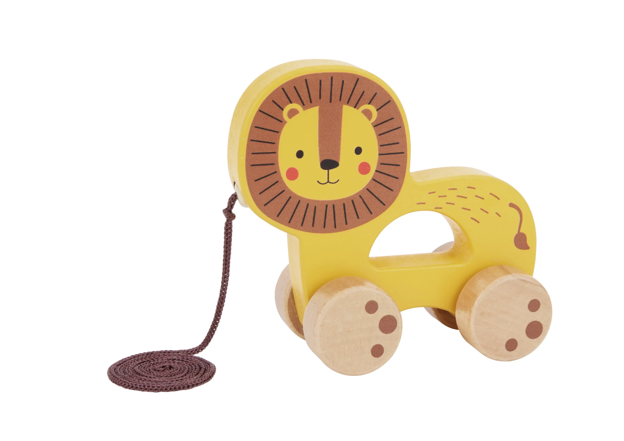 Este arrastre león de madera amarillo es el compañero ideal para los pequeños que están aprendiendo a caminar. Diseñado para bebés a partir de 18 meses, combina diversión, seguridad y aprendizaje en cada paseo.