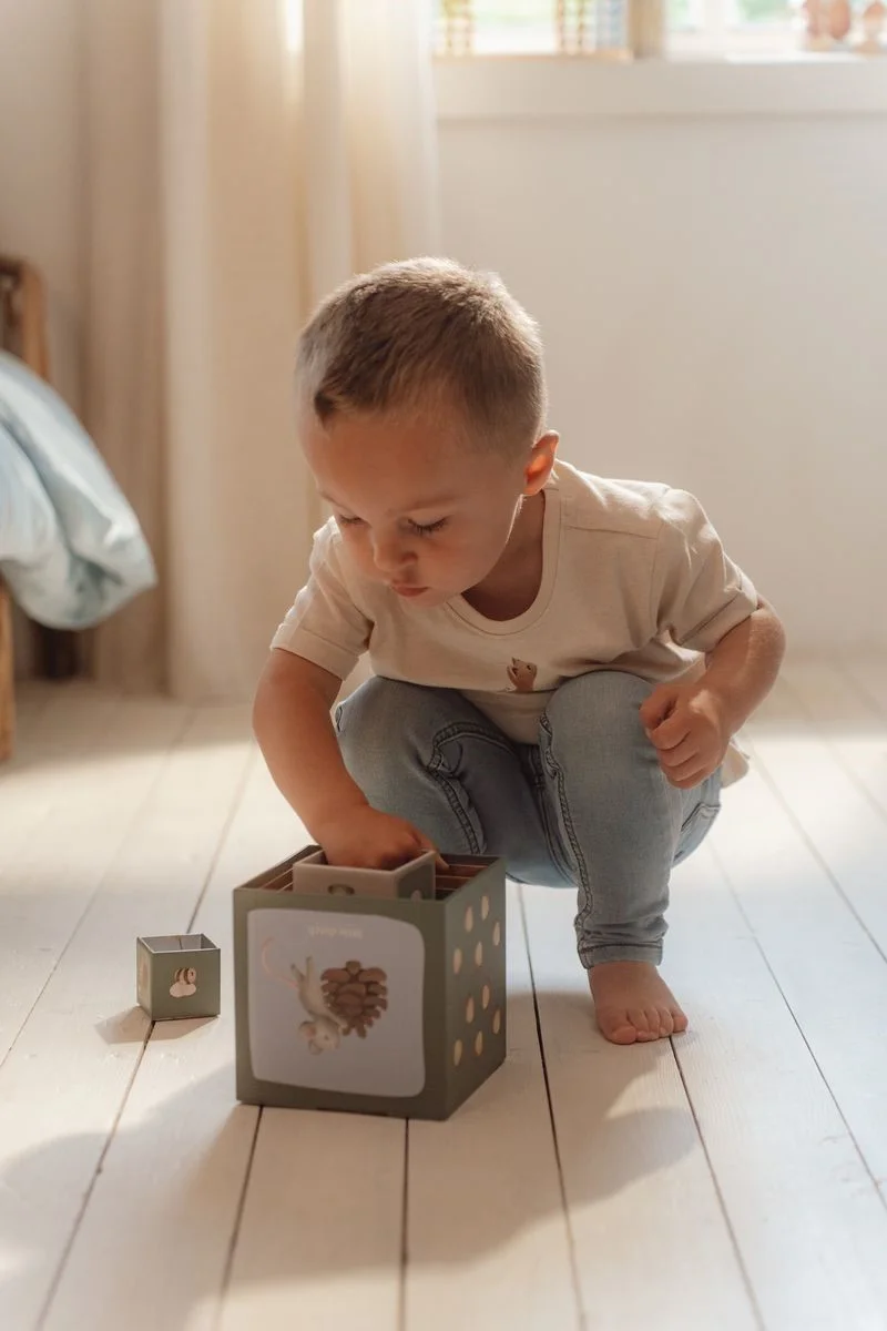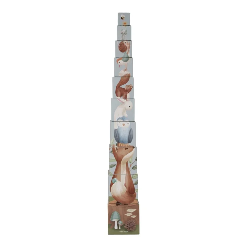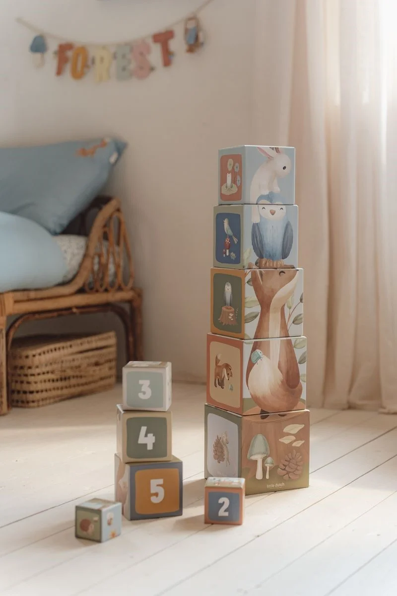 ¡Apila un bloque sobre otro y observa cómo crece la magia de Forest Friends! Puedes crear una torre alta apilando los bloques o colocándolos horizontalmente en el suelo. Explora cuatro escenas encantadas en el interior. Ordena a los simpáticos animales del bosque por tamaño, de grande a pequeño. Ordénalos por números de dos formas diferentes o colecciona las imágenes individuales de los elementos del bosque. Con estos bloques de construcción, los niños aprenderán a contar hasta 10 de forma lúdica. Cada bloque presenta encantadoras ilustraciones de la colección Forest Friends, que incluyen ardillas, zorros, conejos, erizos, búhos y hongos. Los bloques más pequeños se pueden colocar dentro de los más grandes, por lo que son fáciles de ordenar. Los bloques están hechos de cartón resistente, por lo que son muy duraderos. El bloque más pequeño mide 5 cm y el más grande, 14 cm.
