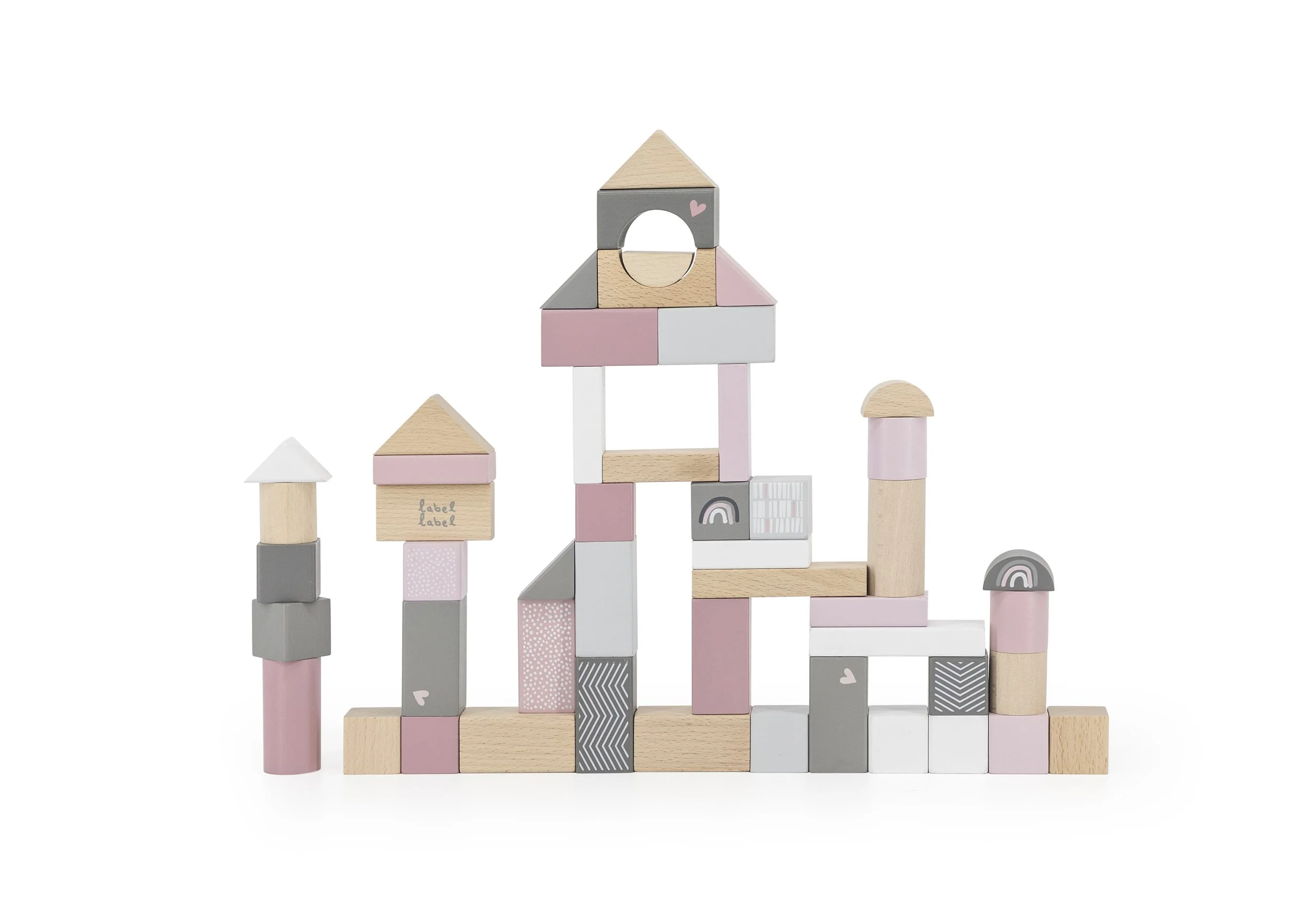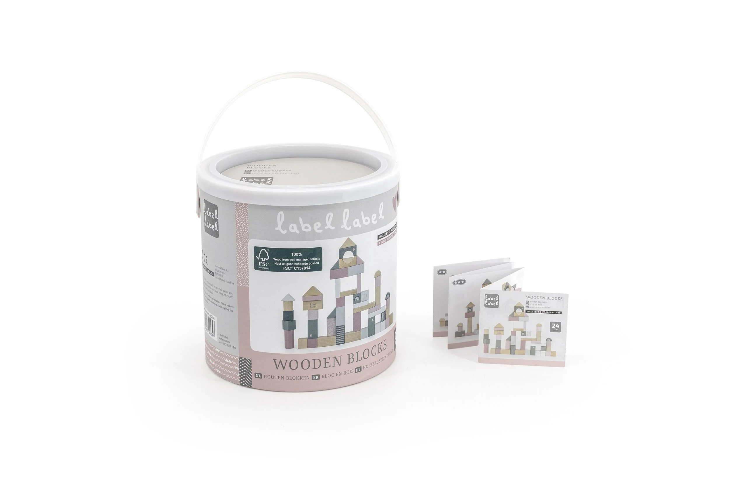 Diseña, crea y construye los edificios , formas … más maravillosos con este juego de bloques de madera Label Label.