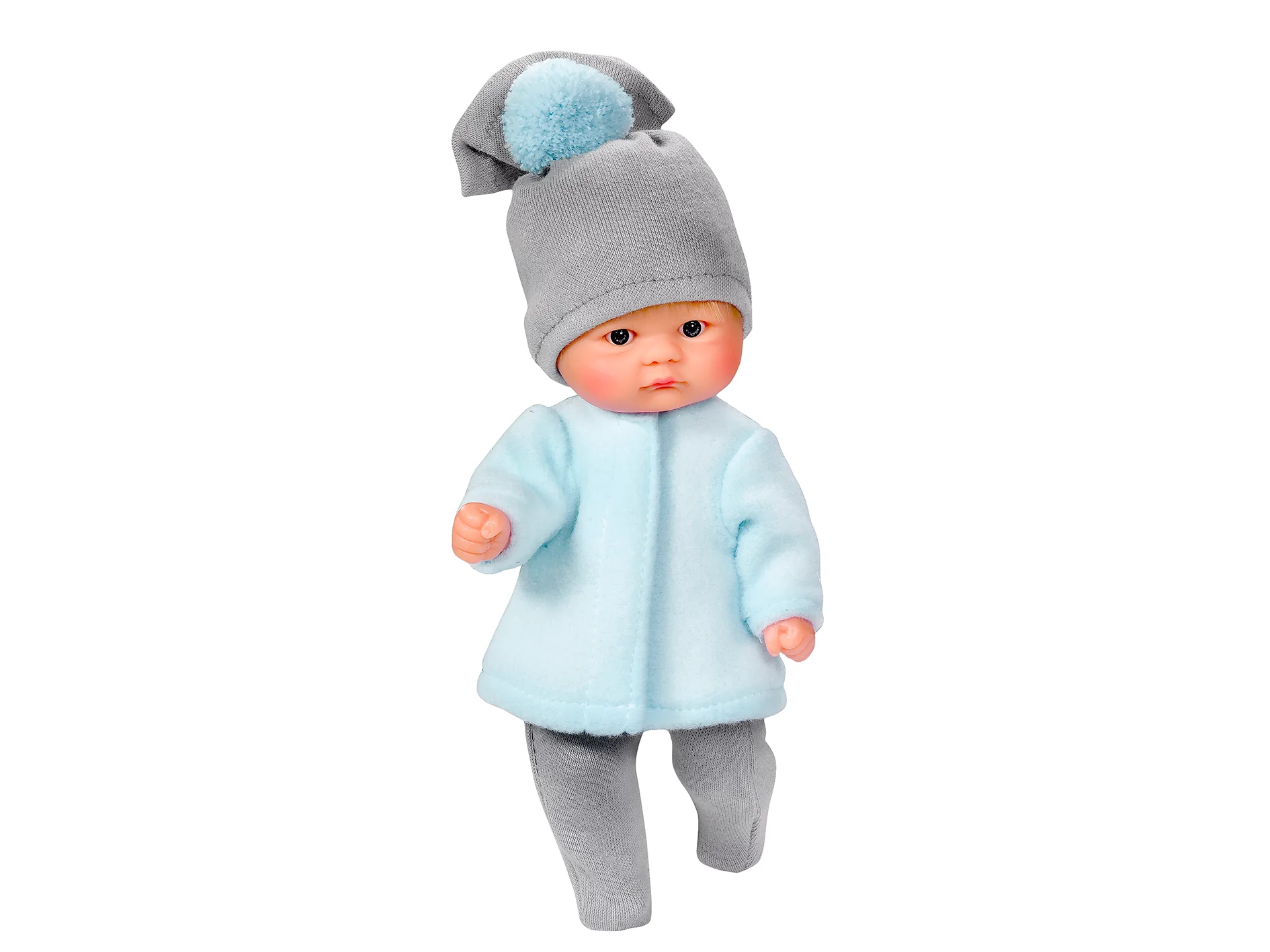 Este Bomboncín lleva un conjunto ideal para los largos días de invierno.¡Con su pantalón gris y su abrigo no pasará frío!