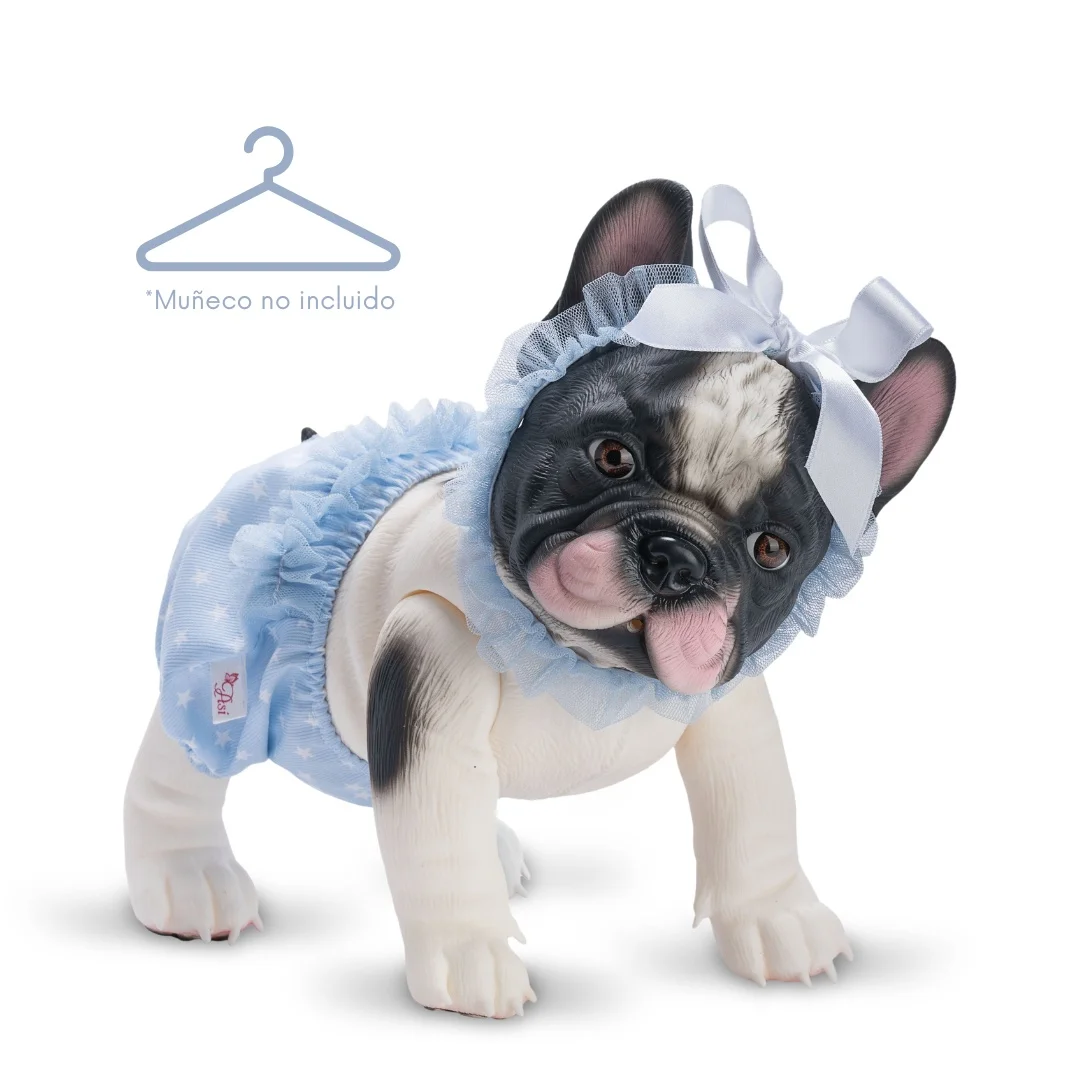 Braguita y diadema para Lily, la bulldog Reborn. Este conjunto encantador permite vestir a tu muñeco favorito con estilo, aportando un toque de ternura y elegancia en cada look.