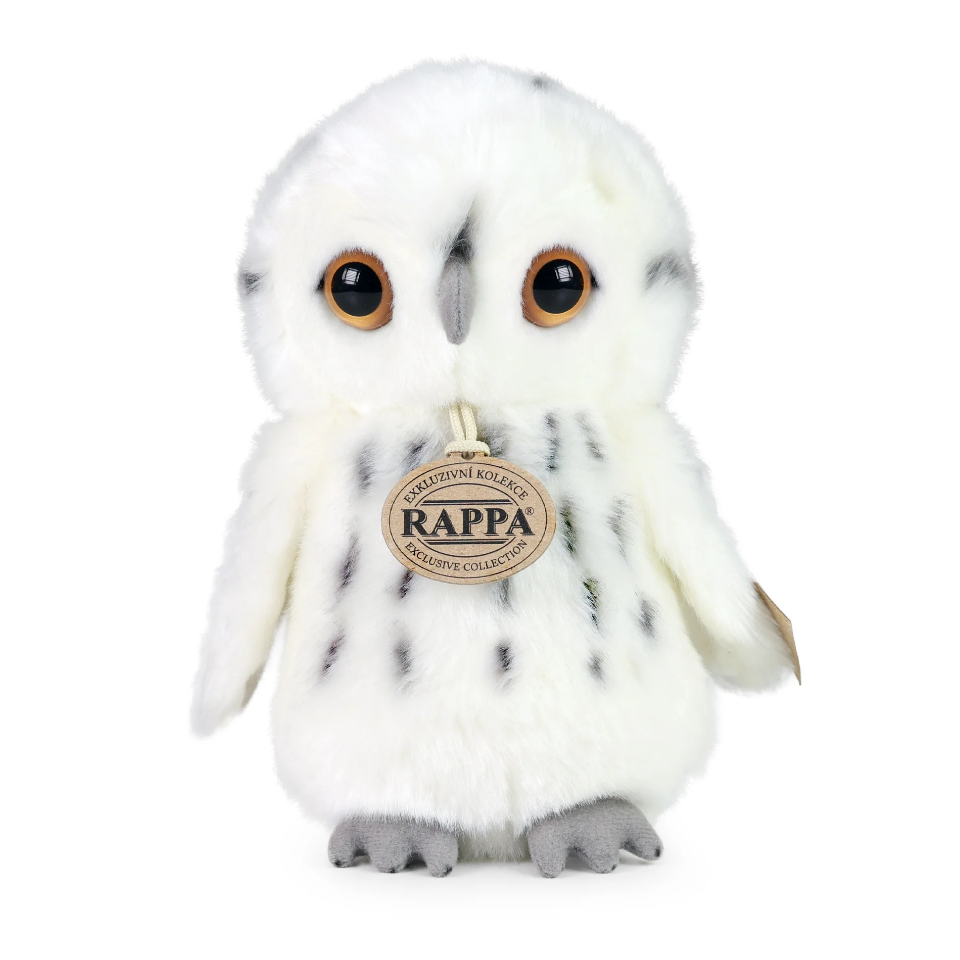 El búho blanco de peluche de 18 cm está cosido a mano con un suave pelaje de alta calidad, lo que le da un aspecto realista. Forma parte de la exclusiva colección de peluches RAPPA.