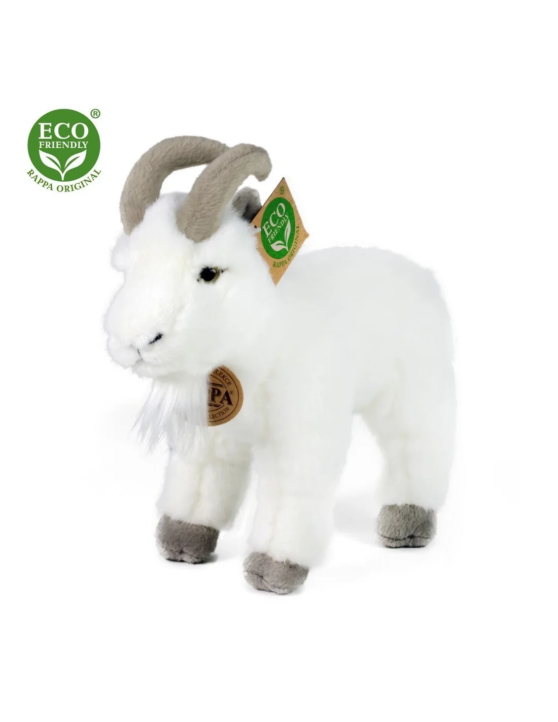Descubre la simpatía y el carácter de la cabra con nuestro peluche de 20 cm. Confeccionado con tejidos de alta calidad, este peluche captura la esencia de una cabra blanca real, desde su pelaje suave y esponjoso hasta sus pequeños cuernos y orejas. Su relleno está hecho de materiales reciclados, ofreciendo una opción ecológica que reduce el impacto ambiental.