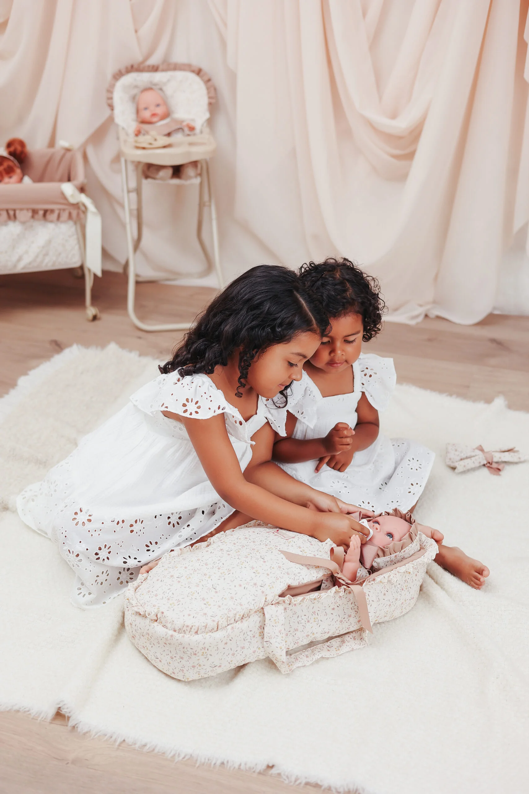 Este capazo es perfecto para que los más pequeños transporten y acurruquen a sus muñecas de forma cómoda y segura. Diseñado para muñecos de 36 a 46 cm, combina practicidad y encanto para el juego diario.