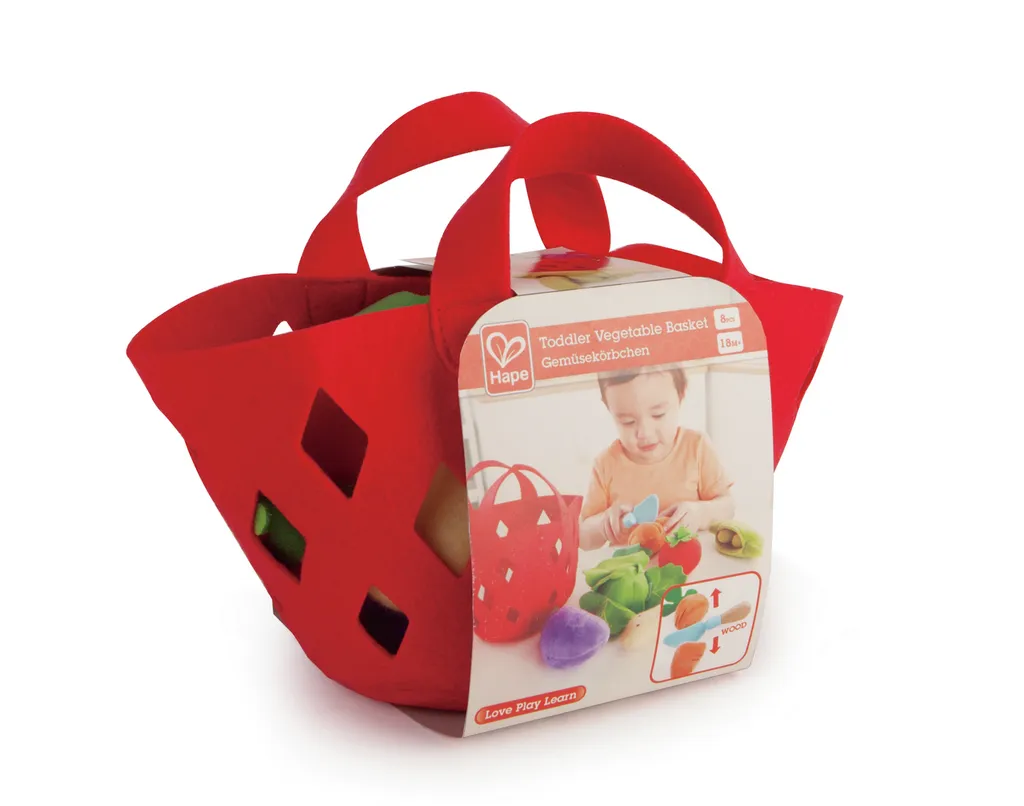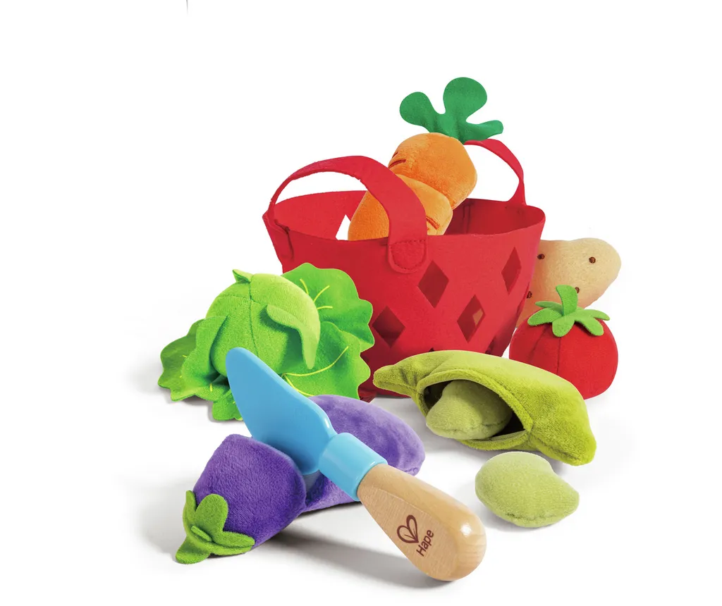Llena esta cesta de fieltro suave con seis de tus verduras favoritas de la marca Hape.