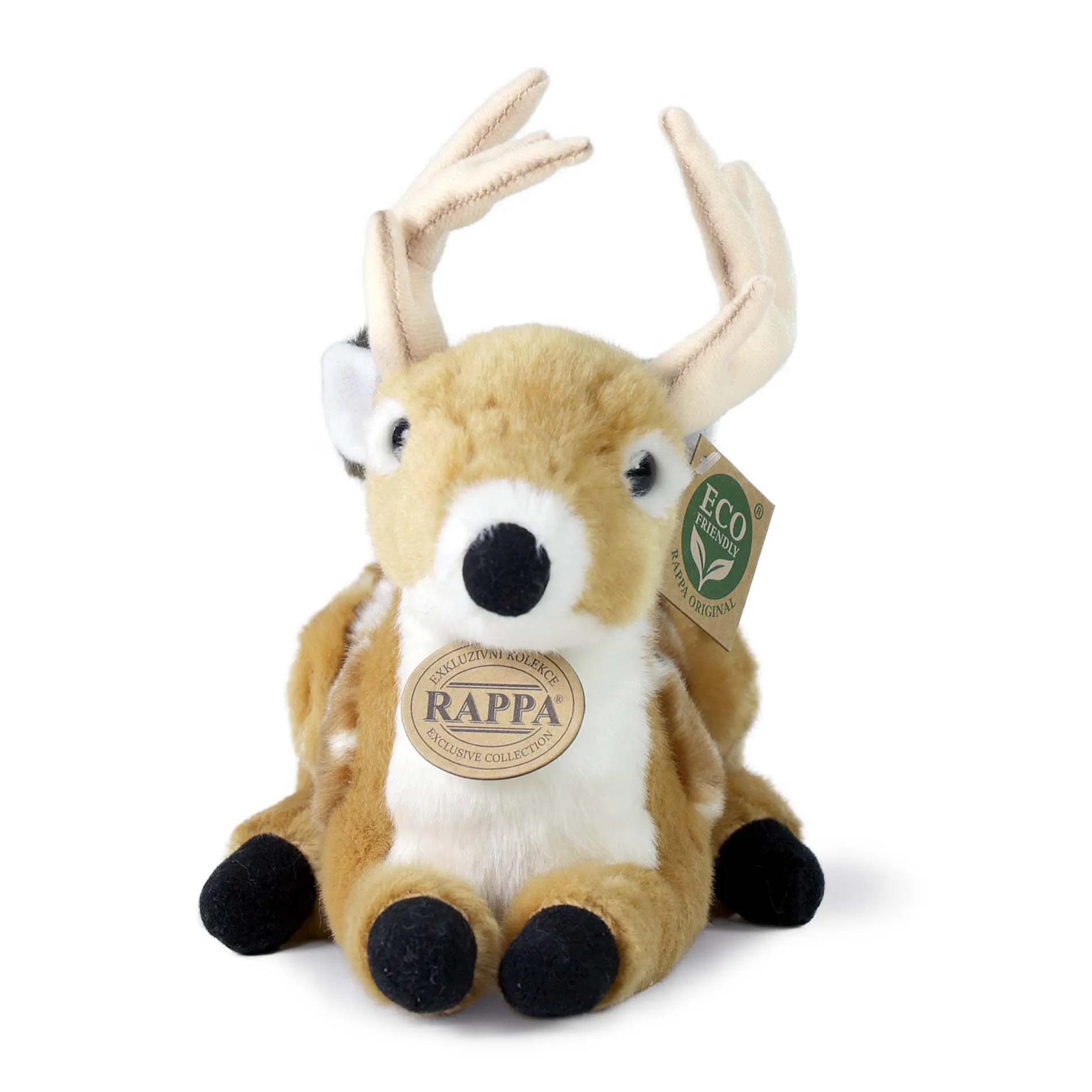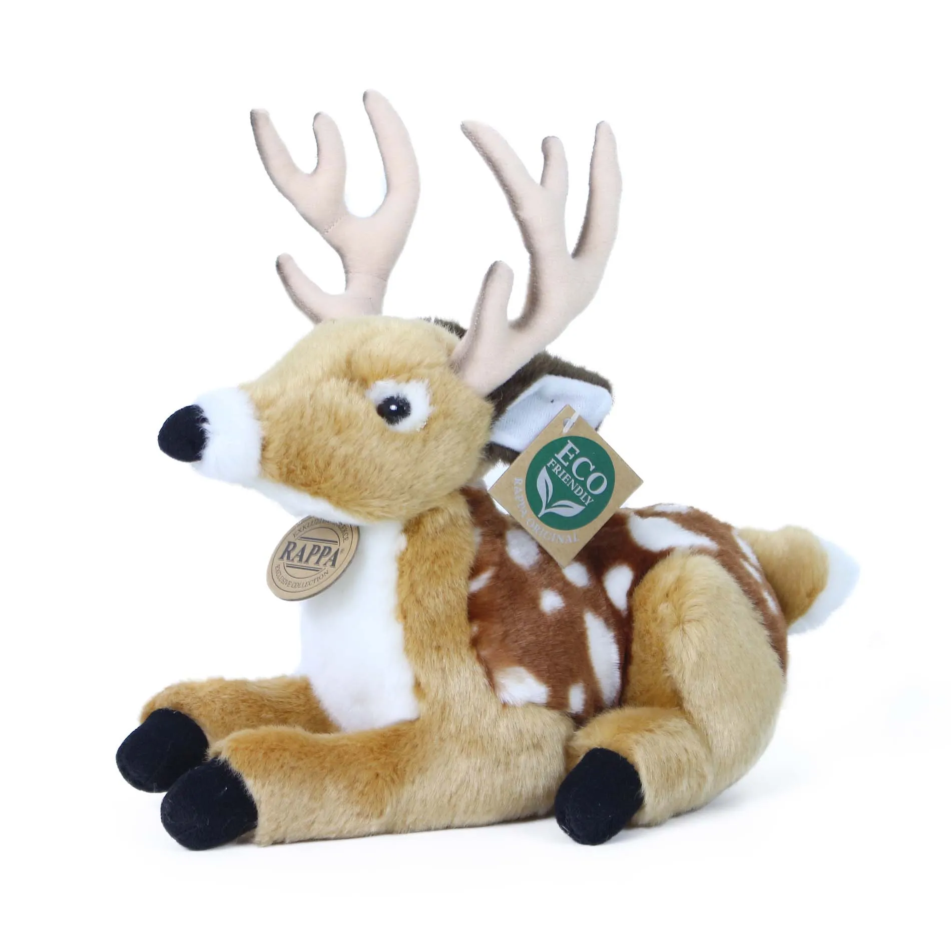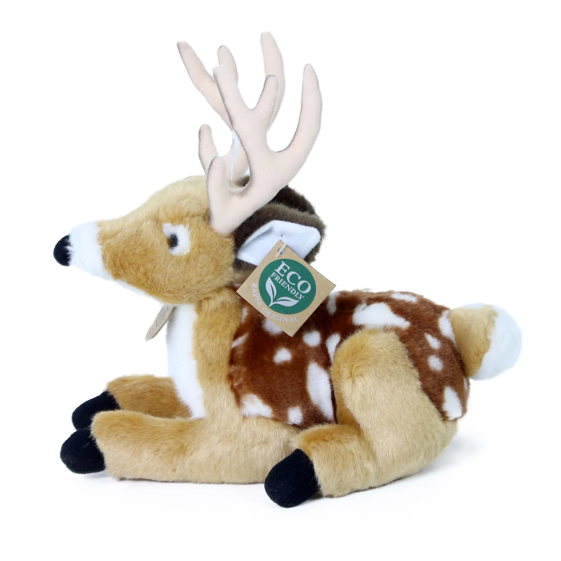 Explora la majestuosidad del ciervo con nuestro peluche de 21 cm. Confeccionado con tejidos de alta calidad, este peluche captura la elegancia y el detalle del ciervo, desde sus cuernos ramificados hasta su pelaje suave y detallado. Su relleno está hecho de materiales reciclados, ofreciendo una opción ecológica que minimiza el impacto ambiental.