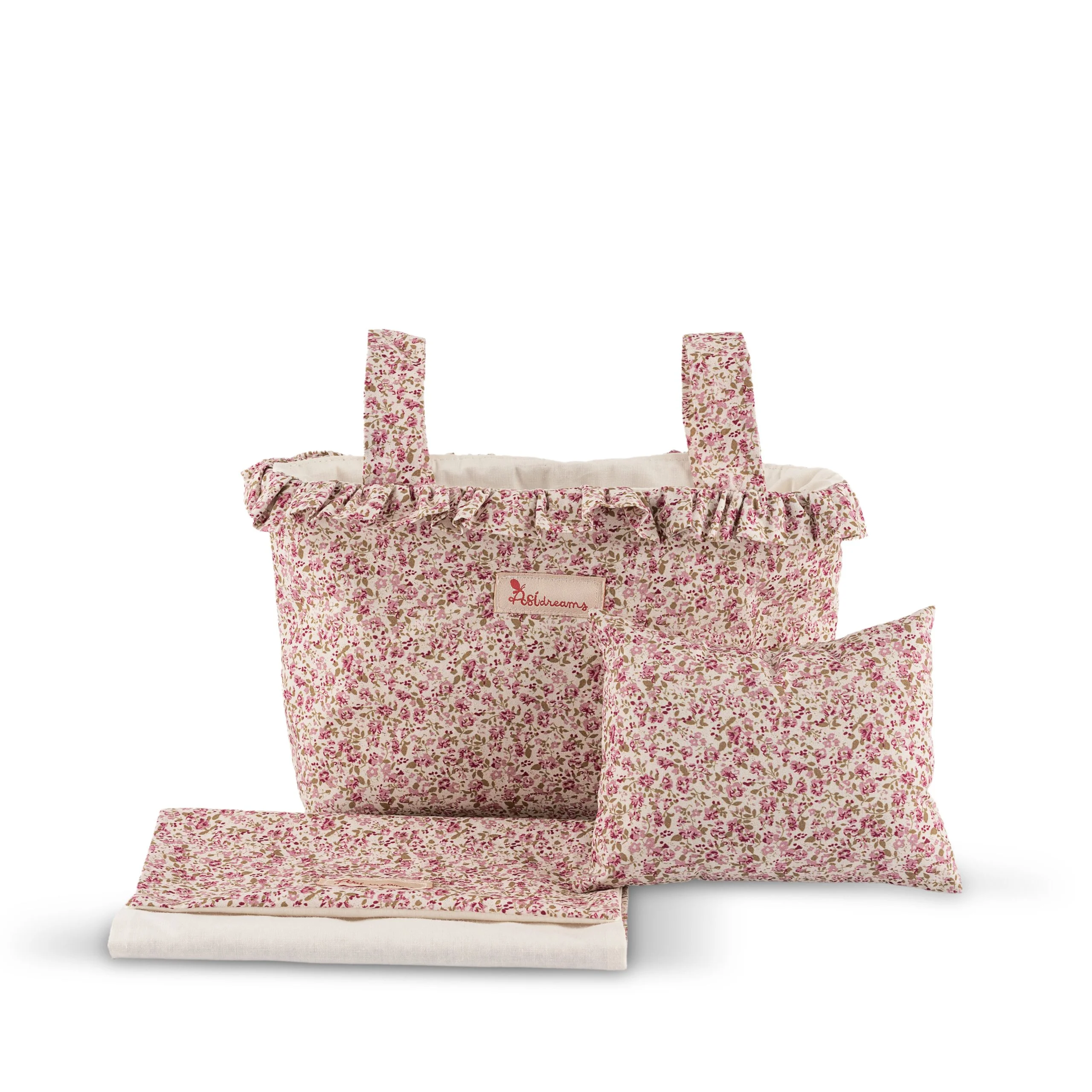 Incluye accesorios: Sábanas, almohada y pañalera para llevar todo lo del muñeco.
