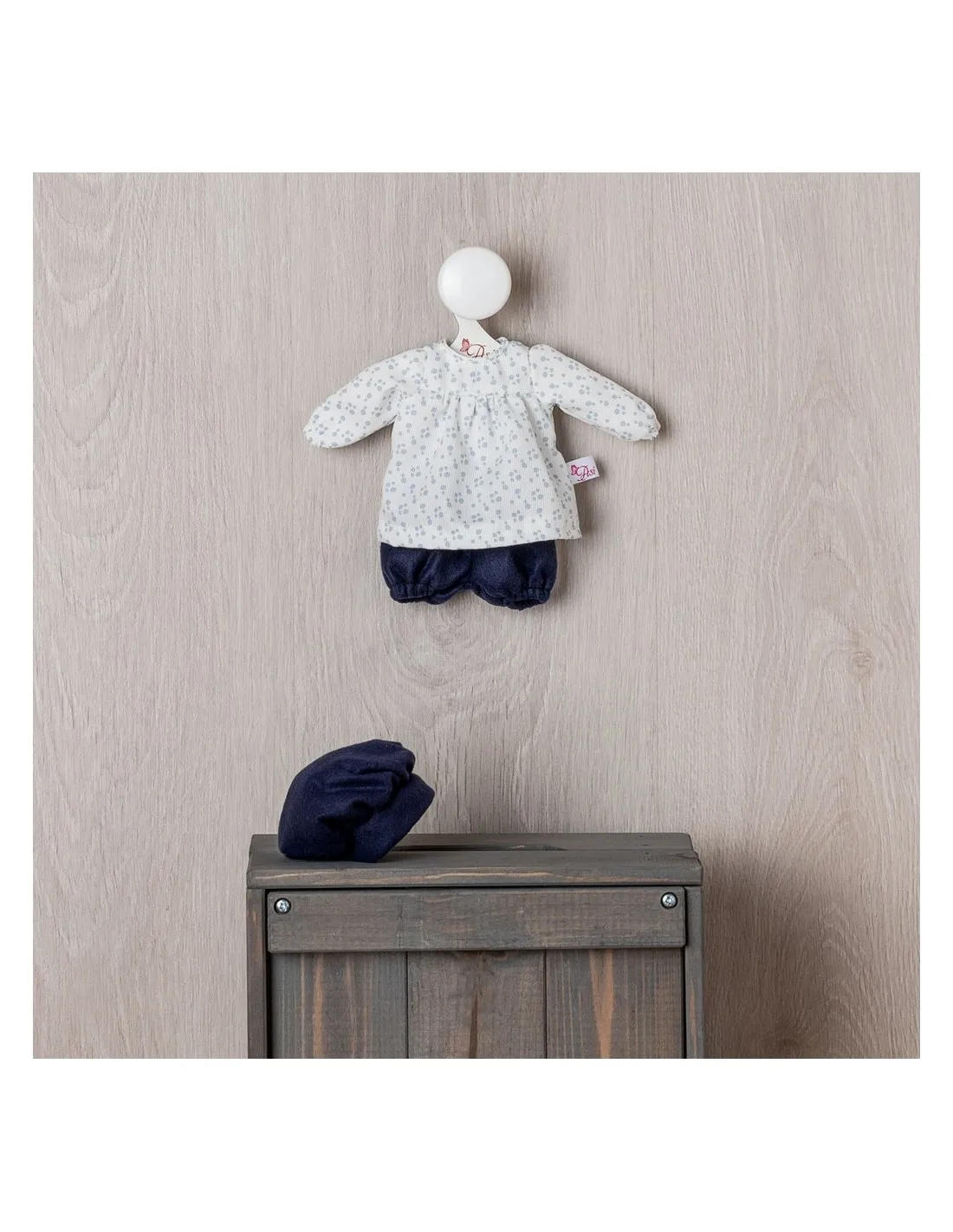 Conjunto para muñeca de 30cm de camisa, pantalón y boina azul marino.