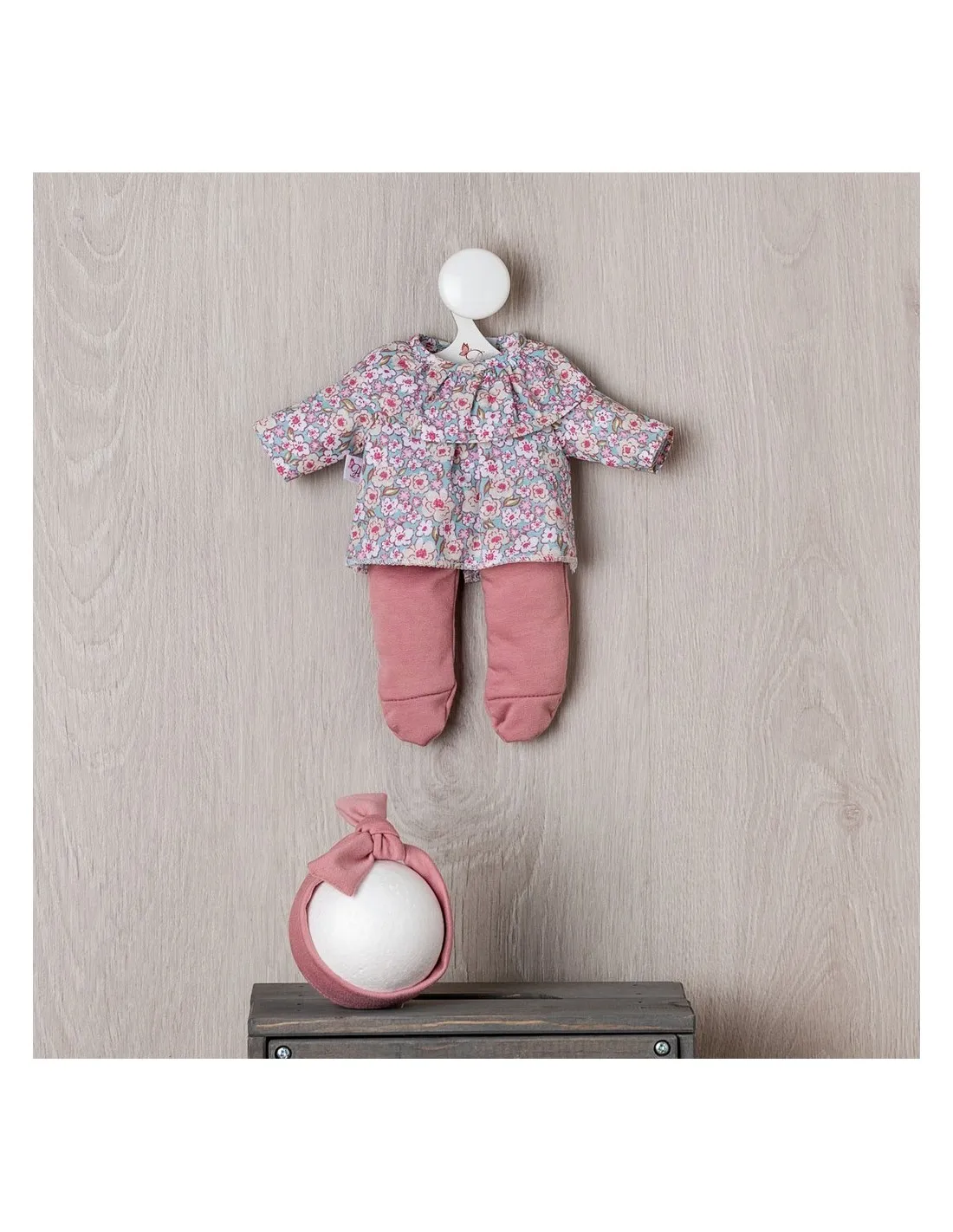 Conjunto para muñecos de 28cm con camisa flores , polaina y diadema.