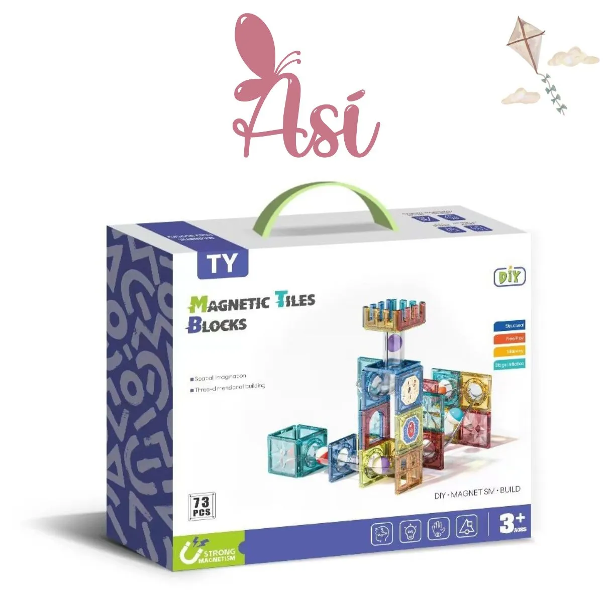 Este juego de construcción con bloques magnéticos de colores está diseñado para niños y niñas a partir de 3 años.