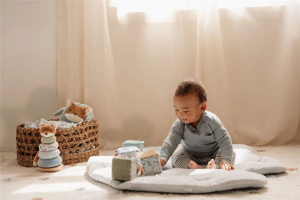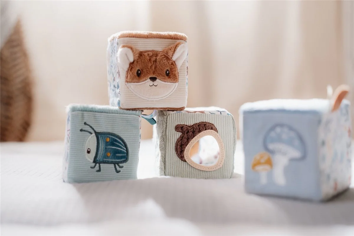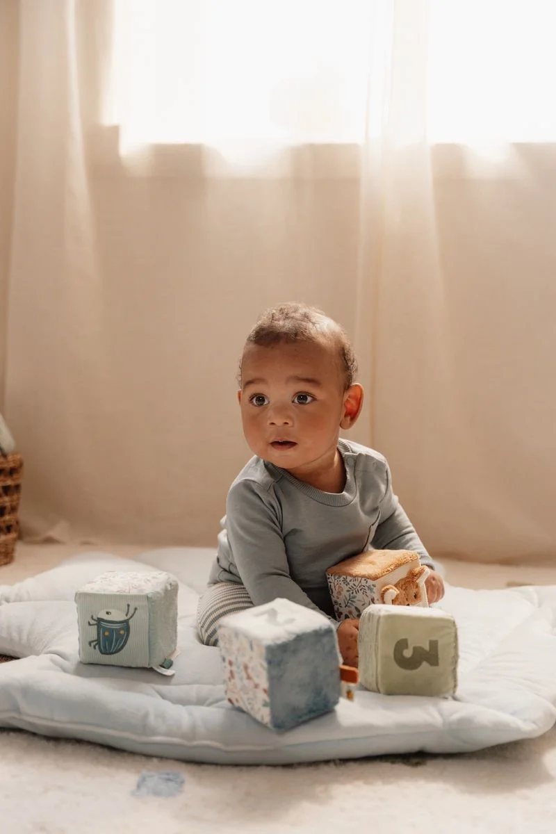 ¡Sonido, sonajero y rueda! Con una variedad de sonidos, texturas y características para explorar, este divertido conjunto de bloques de actividades suaves de la colección Forest Friends mantendrá a tu pequeño entretenido. Además, estimula la coordinación mano-ojo. El alegre conjunto consta de cuatro bloques multisensoriales, cada uno definido por colores suaves y decorado con un número único. Las manos del bebé también descubrirán nuestras etiquetas cautivadoras, paneles de peluche y el espejo con forma de nuez.