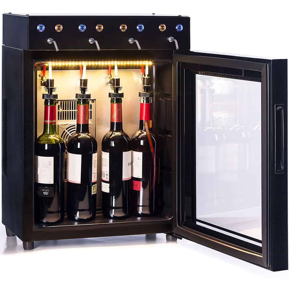 El dispensador de vino para 4 botellas Vinohome VH04N luce un diseño limpio, compacto y funcional. Gracias a su sistema “plug & play”, de conexión fácil y rápida, todos los amantes del vino y profesionales podrán disfrutar de manera instantánea de su uso. Gracias a sus dimensiones compactas y elegantes este dispensador se puede colocar prácticamente en cualquier lugar y moverse con facilidad. Este dispensador no incluye ni el regulador ni la bombona, el cliente tendría que comprarlo al mismo proveedor del gas también le suministra el regulador.