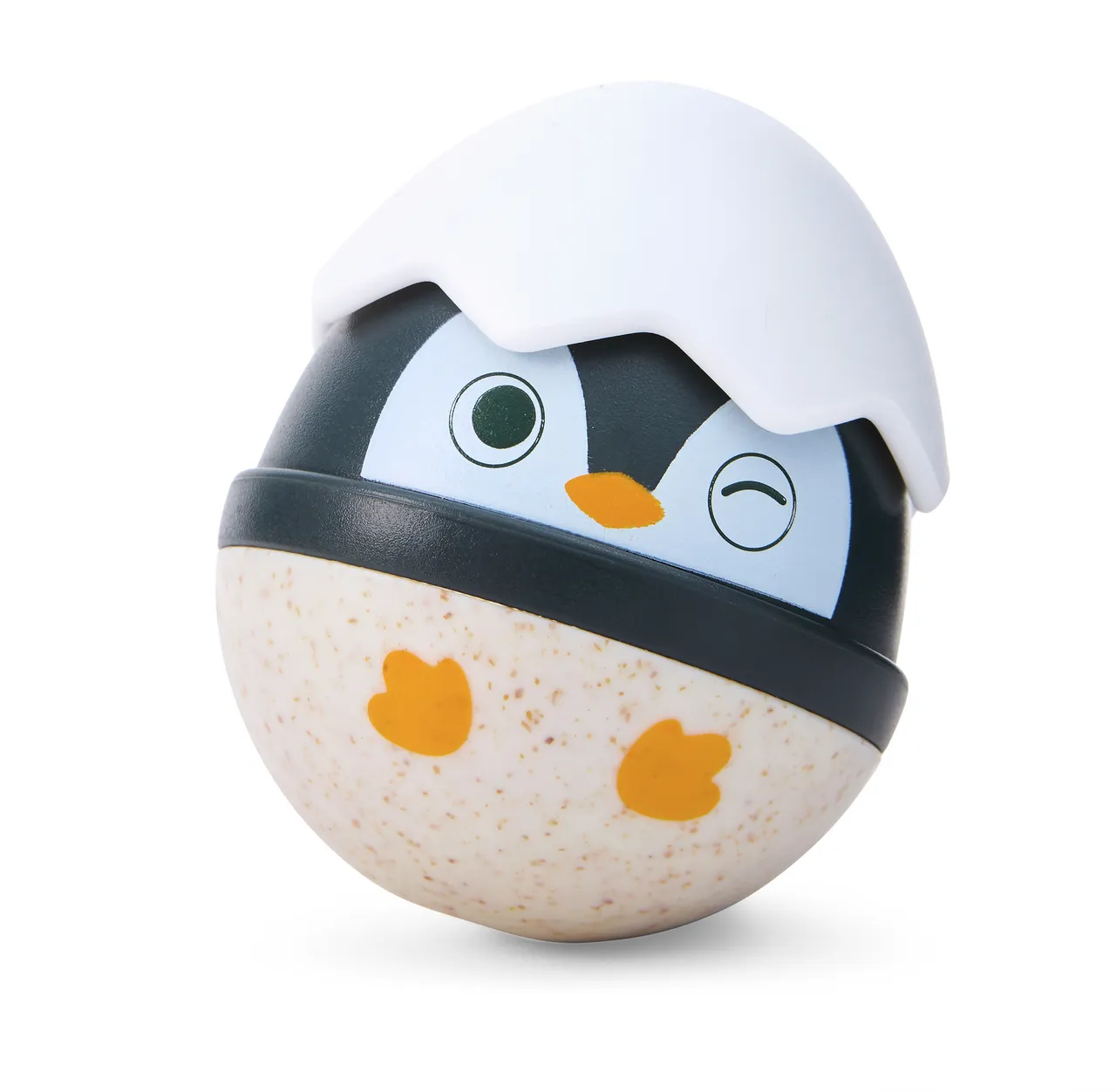 El pingüino grande se balancea suavemente y suena cuando se empuja, imitando el contoneo natural de los pingüinos. Cada huevo más pequeño cuenta con un alegre sonajero y una parte superior de silicona que sirve como mordedor relajante.