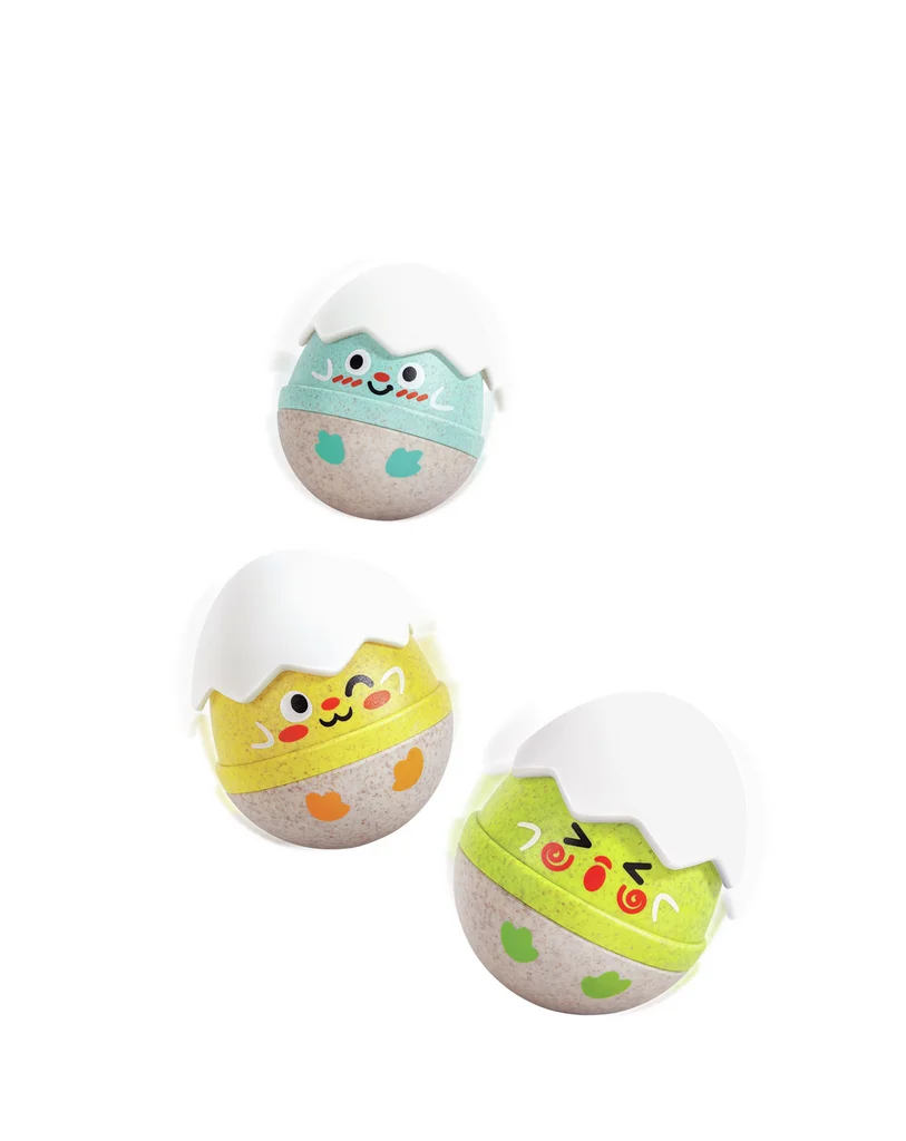 ¡Conoce a los emocionantes huevos! Un conjunto de 3 sonajeros tambaleantes adorables con distintas expresiones faciales. Estos expresivos compañeros cautivan a los bebés con sus encantadoras sonrisas, fomentando la curiosidad y el carácter juguetón.