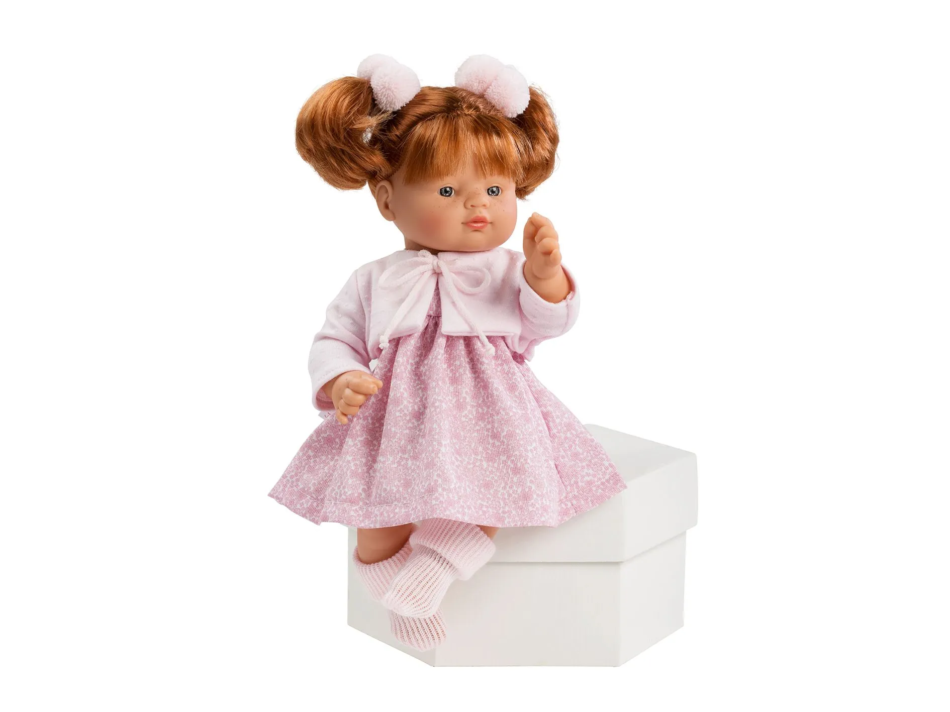 Guille tiene dos encantadoras coletitas pelirrojas y una carita dulce llena de pecas que le dan una personalidad única y entrañable. Su diseño articulado y sus detalles cuidados la convierten en una compañera perfecta para los más pequeños.