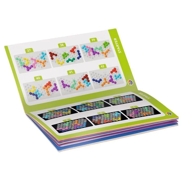 Coloca las fichas del rompecabezas en el tablero de juego como se indica en el reto elegido. Elige resolver los retos en 2D o en 3D.