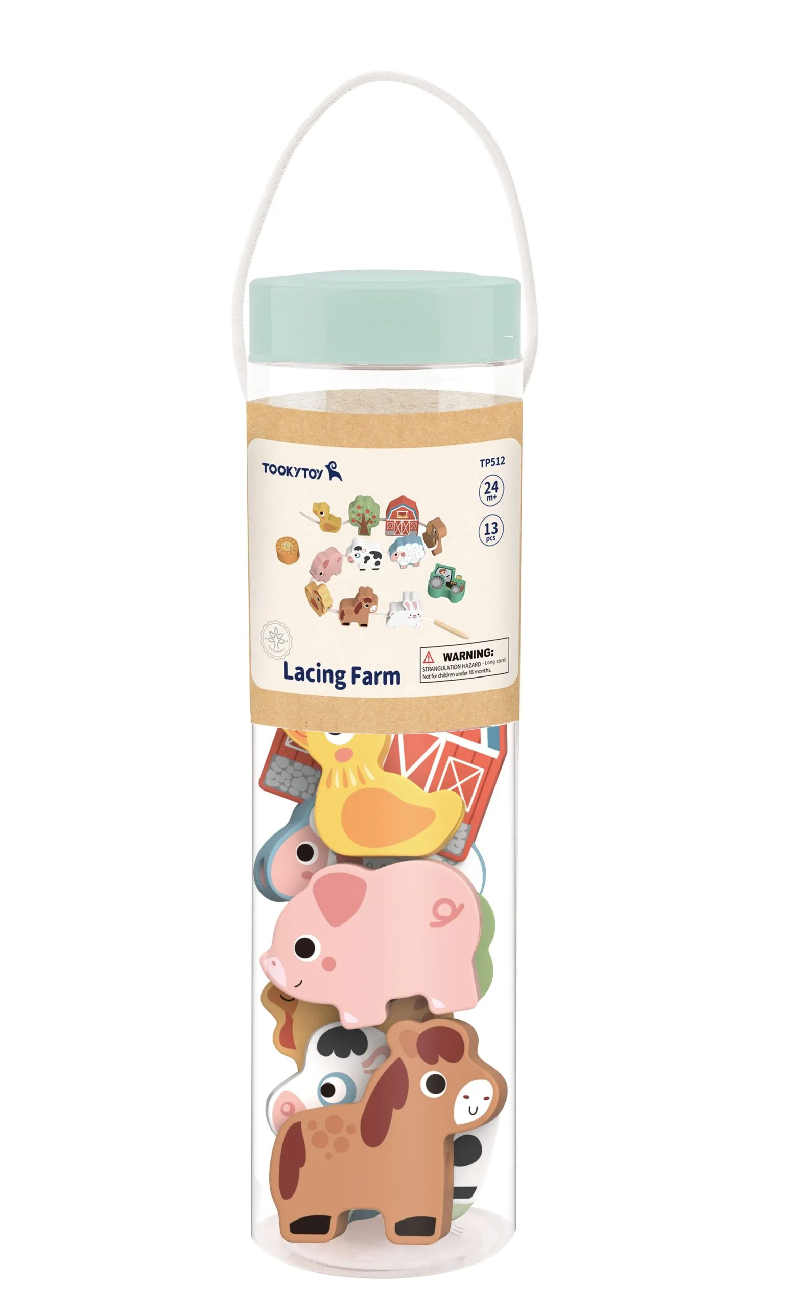 Incluye figuras de madera de animales de la granja, tractores, árboles y otros objetos, que los niños pueden enlazar entre sí con la cuerda. Esto les permite crear diferentes combinaciones y desarrollar su imaginación y creatividad.