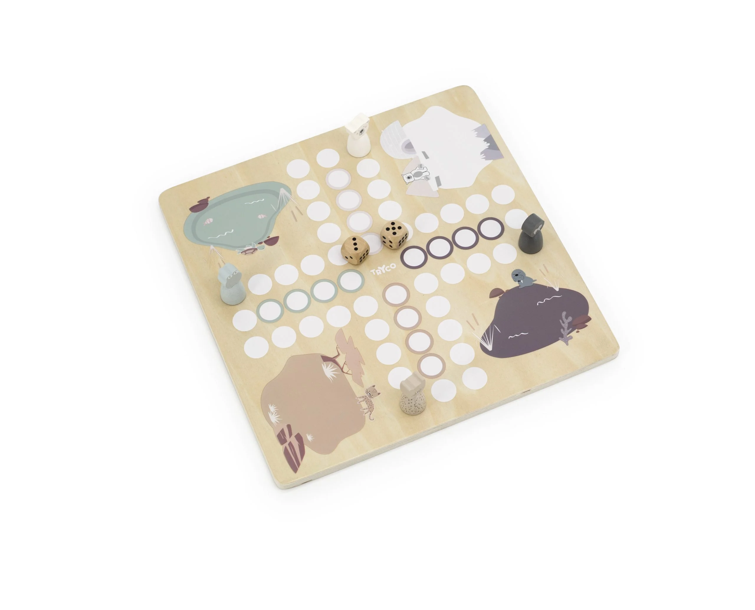 ¿Quién no conoce este clásico juego de mesa? ¡Jugar al LUDO nunca ha sido tan divertido! ¡Tira los dados y a ver quién llega primero a la meta! ¿Quién ganará? ¿La rana, el oso polar, el leopardo o incluso la foca? El tablero, las figuras y los dados son de madera, lo que garantizará la durabilidad de este juego de Ludo.