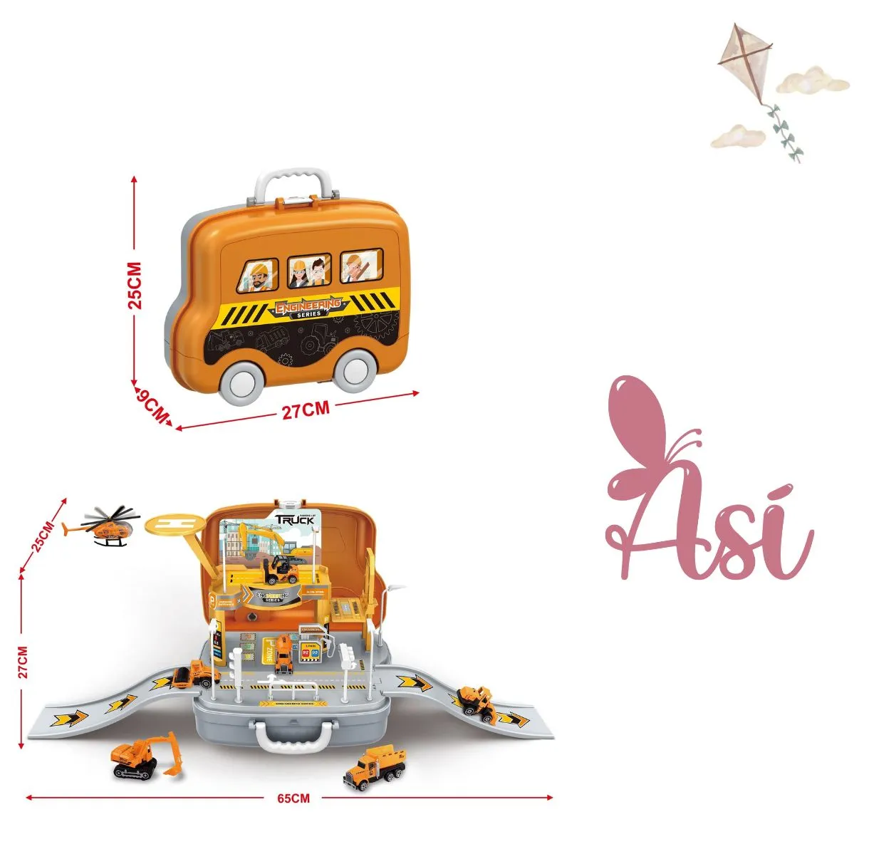 Este maletín con forma de tractor se abre y se transforma en una ciudad en construcción, perfecta para niños y niñas a partir de 3 años.