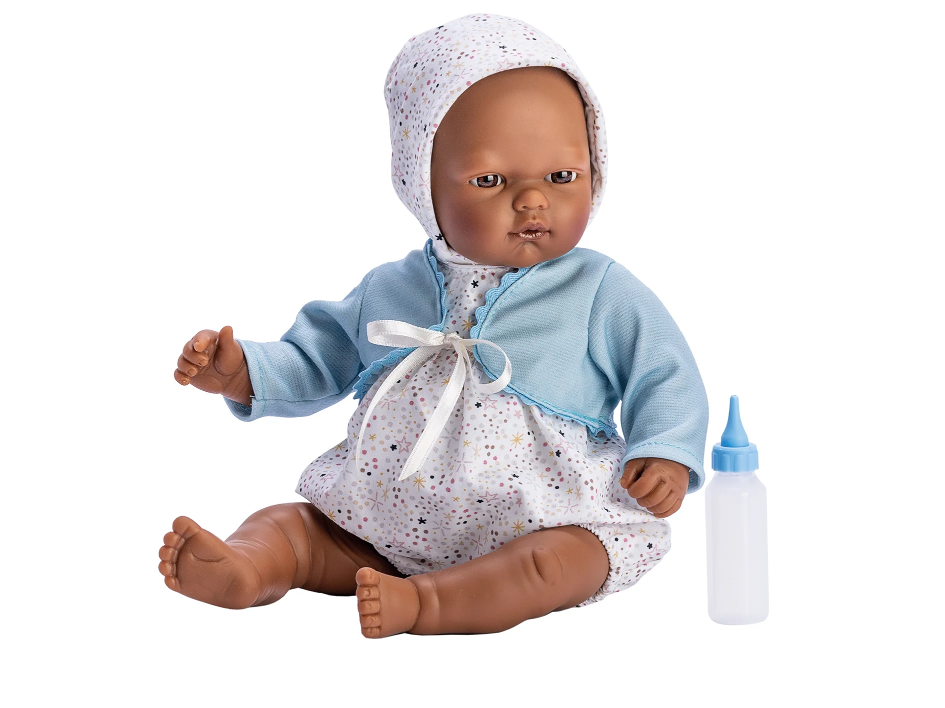 Conoce a Oli Mulata, la muñeca más achuchable de nuestra colección. Con sus 30 cm de altura, Oli se destaca por su cuerpo de tela suave y sus extremidades de vinilo, lo que la hace extremadamente ligera y perfecta para abrazar. Su diseño asegura que sea cómoda y segura para las manos pequeñas de los niños, proporcionando una experiencia de juego tierna y agradable.
