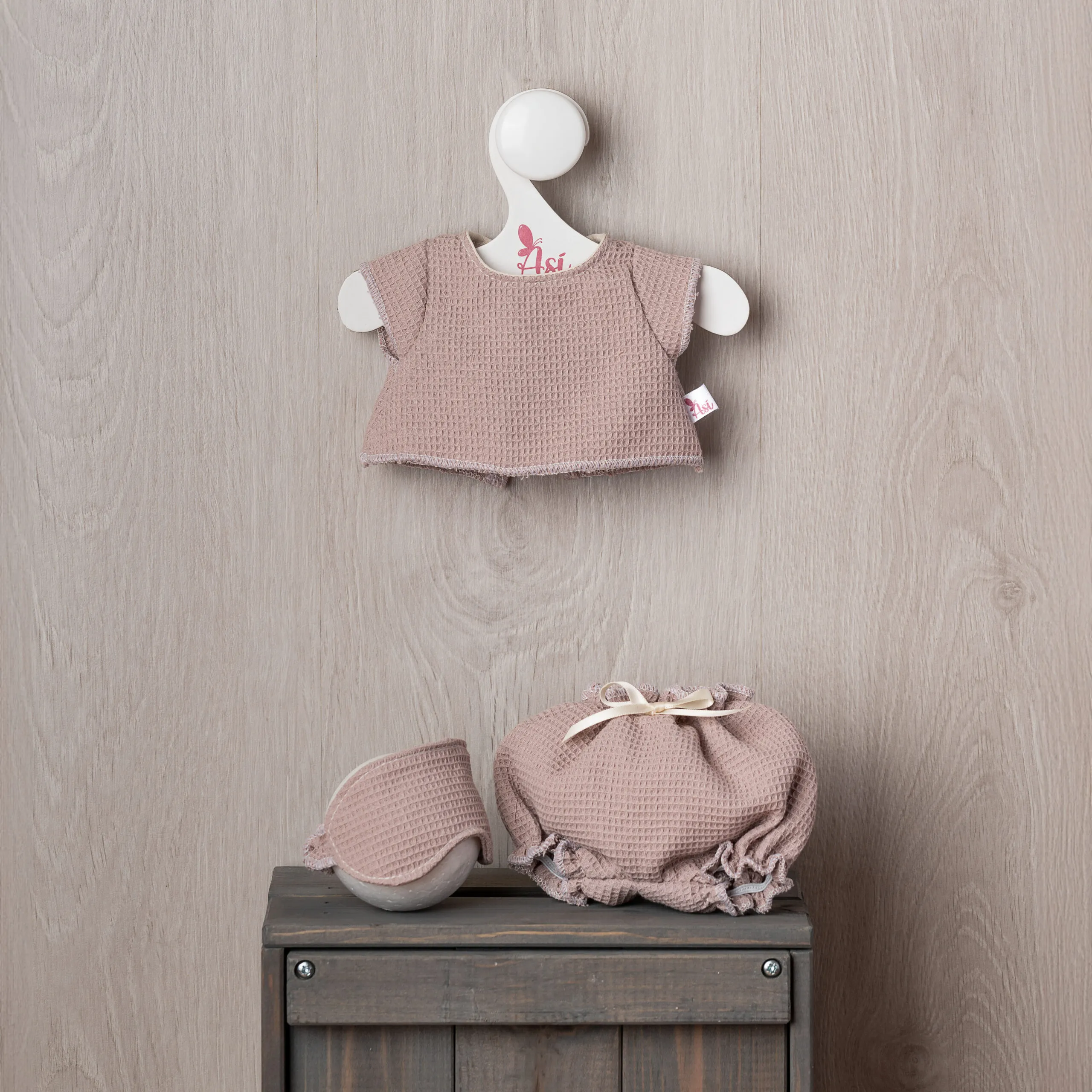 Pijama con camiseta para muñeco de 36cm en color nude, ¡incluye antifaz!
