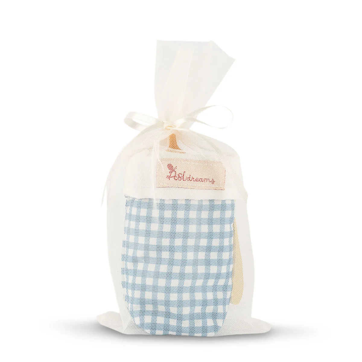 Presentación encantadora: Se entrega en una bolsa de tul con lazo beige, ideal para transportar y guardar el portabiberón y el biberón de manera segura.
