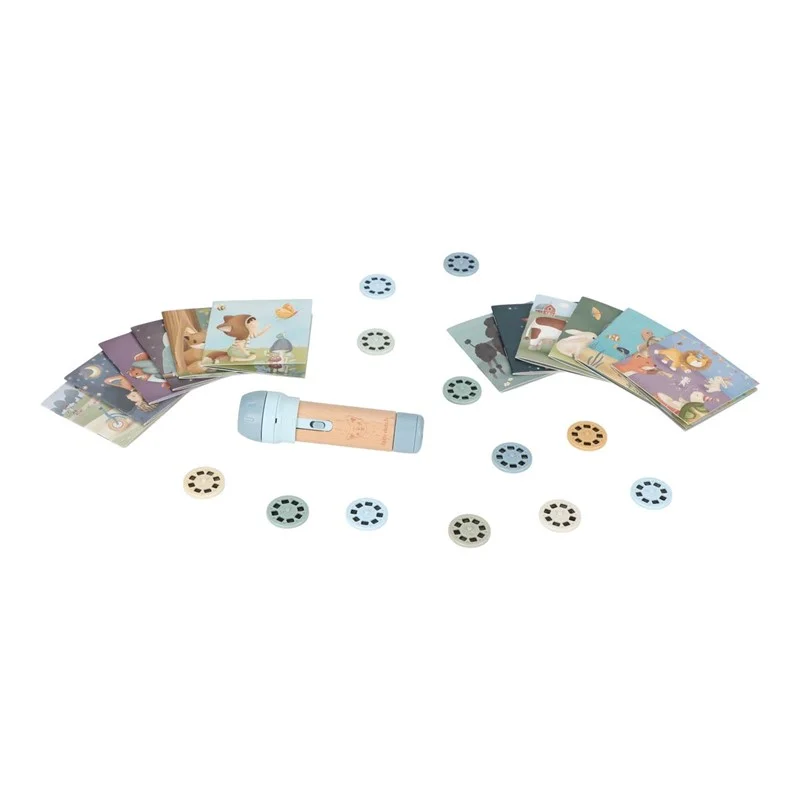 ¡Haz que la magia cobre vida con las historias de esta linterna proyector para niños! Esta linterna especial contiene 12 discos, cada uno con su propia historia que cobra vida a través de hermosas ilustraciones únicas que proyectas en la pared. Cada historia se complementa con un folleto a juego con las ilustraciones. La linterna proyector tiene un mango de madera resistente y funciona con pilas, por lo que puede ir a cualquier parte. Después de la historia, simplemente guarda la linterna y todos los accesorios en la bonita caja de almacenamiento. Perfecta para los niños que aman descubrir y experimentar historias.