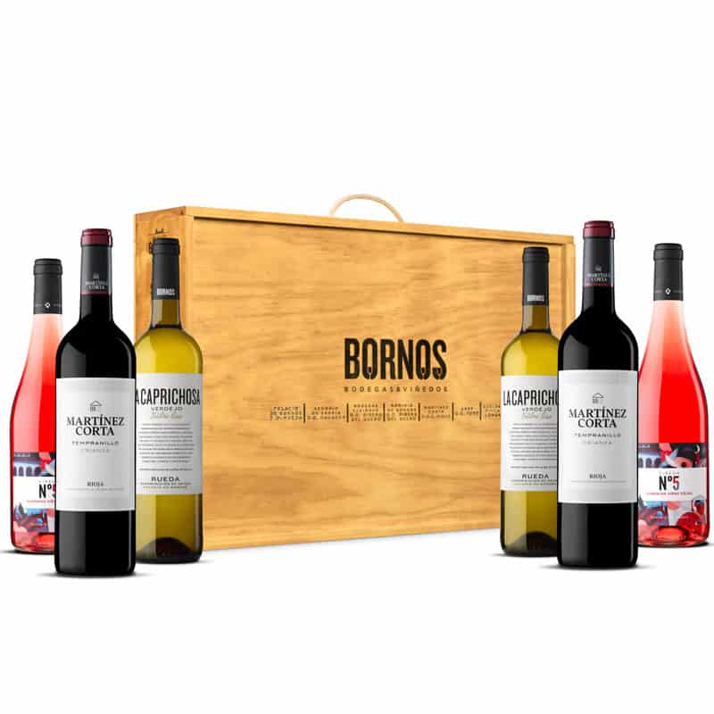 Selección 4 – Caja Madera 6 bot. (2 La Caprichosa, 2 Señorío de Sarría Nº5 y 2 Martínez Corta Crianza)