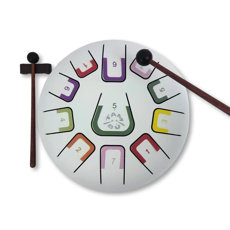 Tambor Tambú de color blanco mate con 11 lengüetas metálicas que puede tocarse con baquetas o las manos.