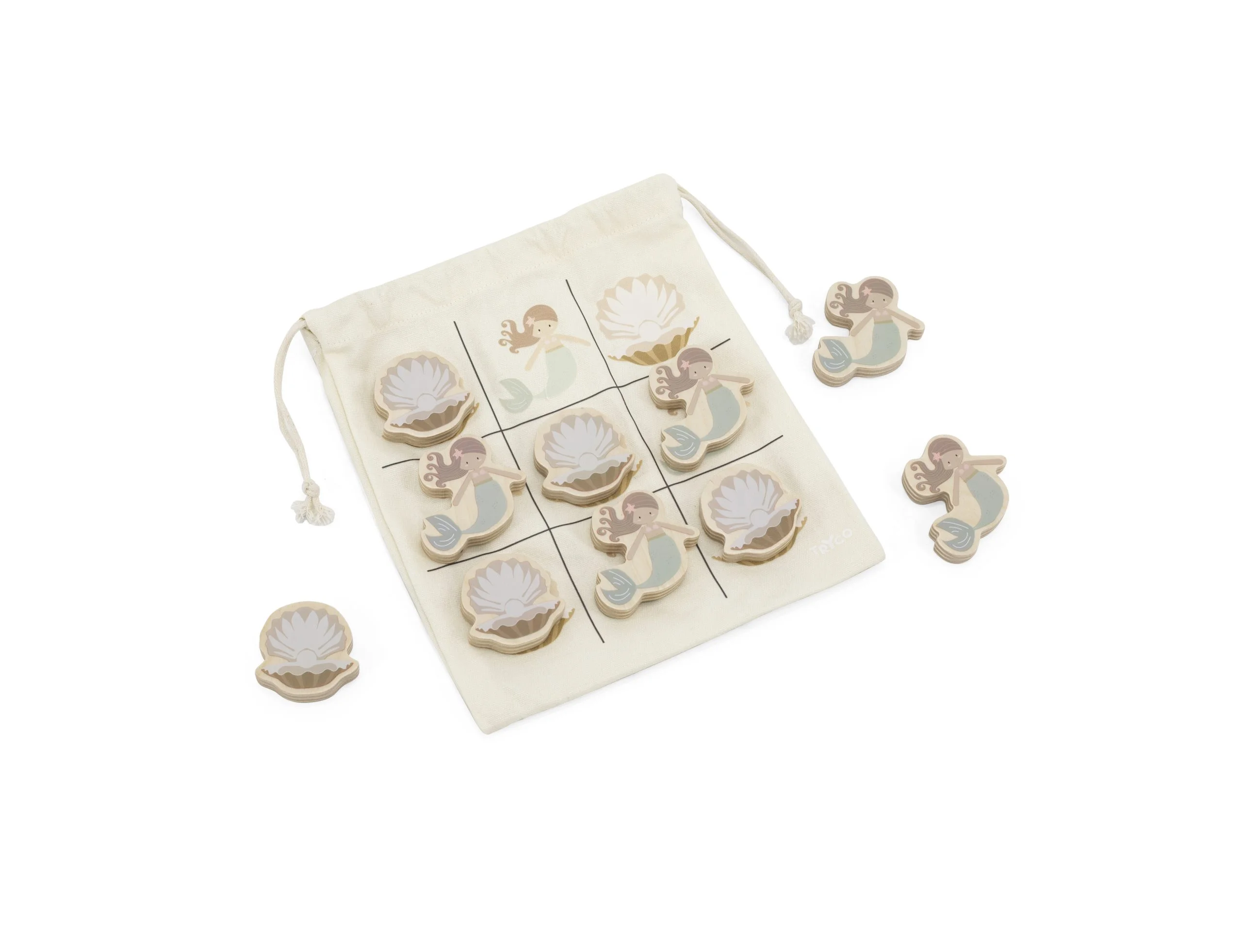 Este juego de tres en raya de madera pondrá a trabajar tu mente. El jugador que primero consiga alinear 3 sirenas o 3 perlas gana la partida. Puede ser en horizontal, vertical o diagonal. Todas las figuras son de madera maciza y vienen en una bolsa de algodón, para guardar fácilmente y estampada con el tablero para que el juegos sea más cómodo.