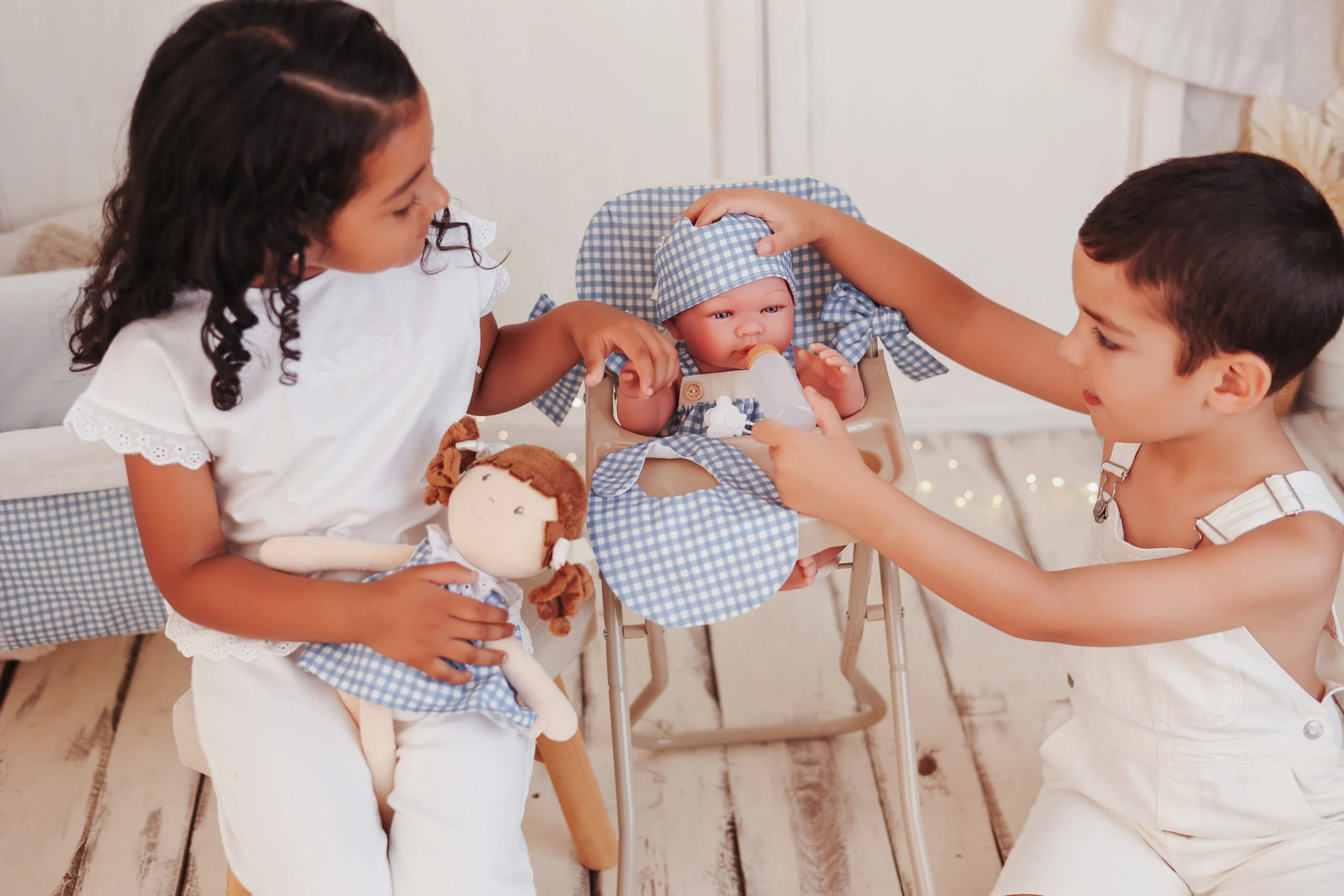 ¡Presentamos la trona para muñecos perfecta! Diseñada para muñecas de 36 a 46 cm, combina estilo y funcionalidad, siendo un accesorio práctico y divertido para el juego diario.