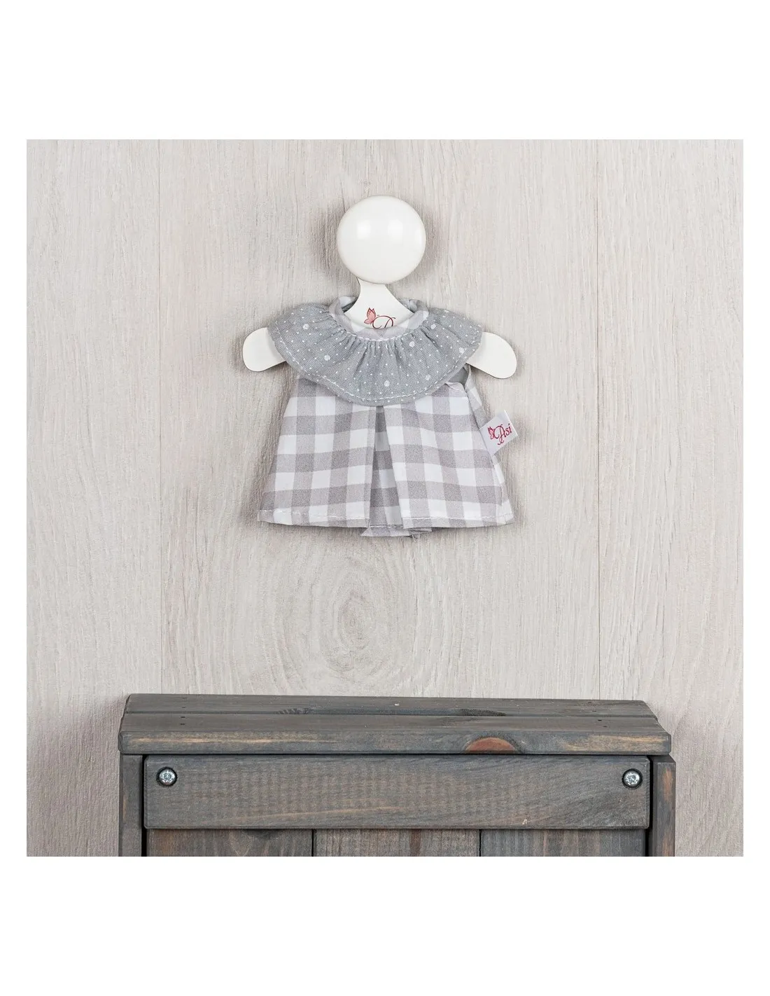 Vestido de cuadros grises para muñeco de 20cm.